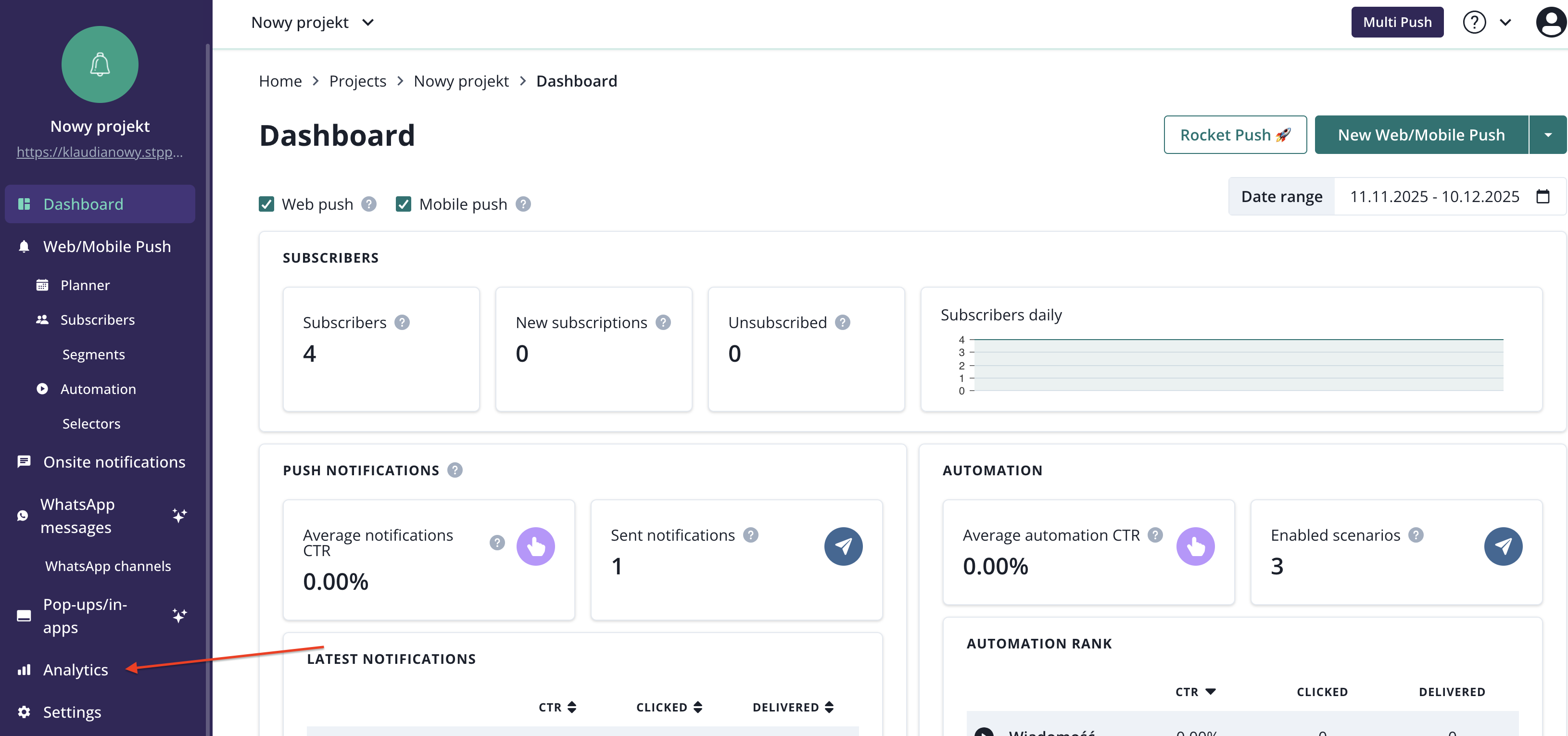 Analytics section consists of pages dedicated to different types of campaigns. Here, you can explore detailed performance metrics, evaluate the effectiveness of your communication strategy, and uncover insights to help optimize future campaigns.