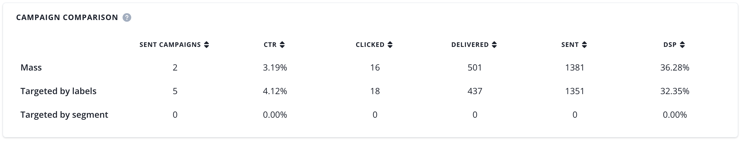 - campaign rank (list of campaigns sent in a selected time range with statistics).