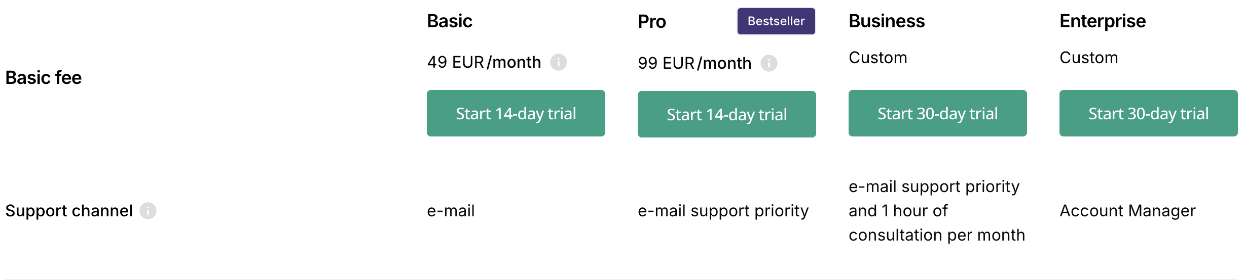 We operate in standard business hours; 9:00 am - 5:00 pm CEST, however our mailbox is being checked during weekends and after office hours, so you can expect a response even outside standard working ours.
