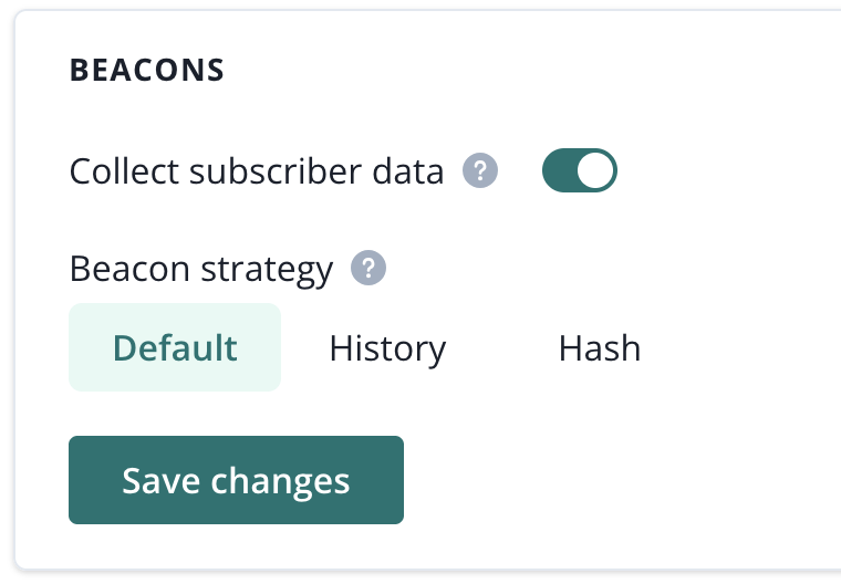 PushPushGo offers several strategies for sending beacons to the application. It depends on how your website is built, but generally default strategy works for most cases. Go to Integration > Web push > Beacons to manage beacons strategy.