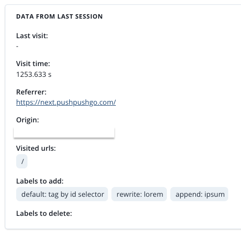 The information that we have about a subscriber from the session is gathered thanks to beacons. That information can be later turned into labels and segments via selectors.