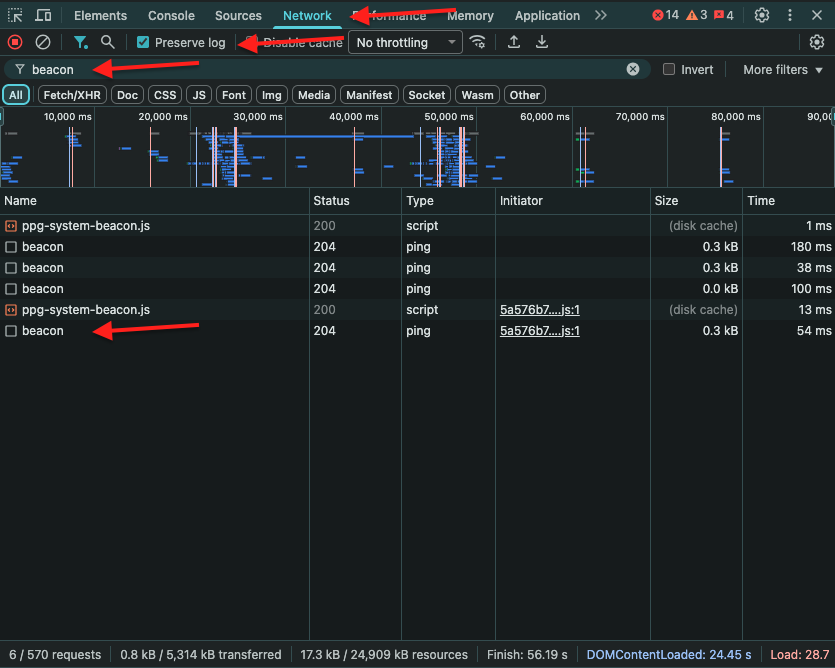 Each transition on a page, like reloading it, leaving it, or moving to a new subpage, results in sending a beacon with data included in a selector for automation scenario purposes.