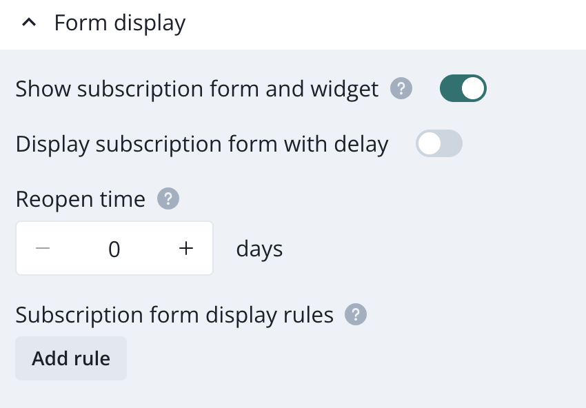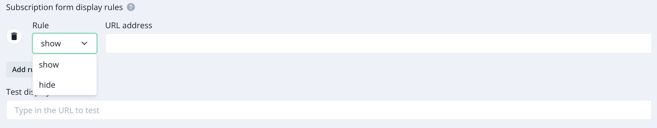 You can define determine on which URLs the subscription form should be shown or hidden.
