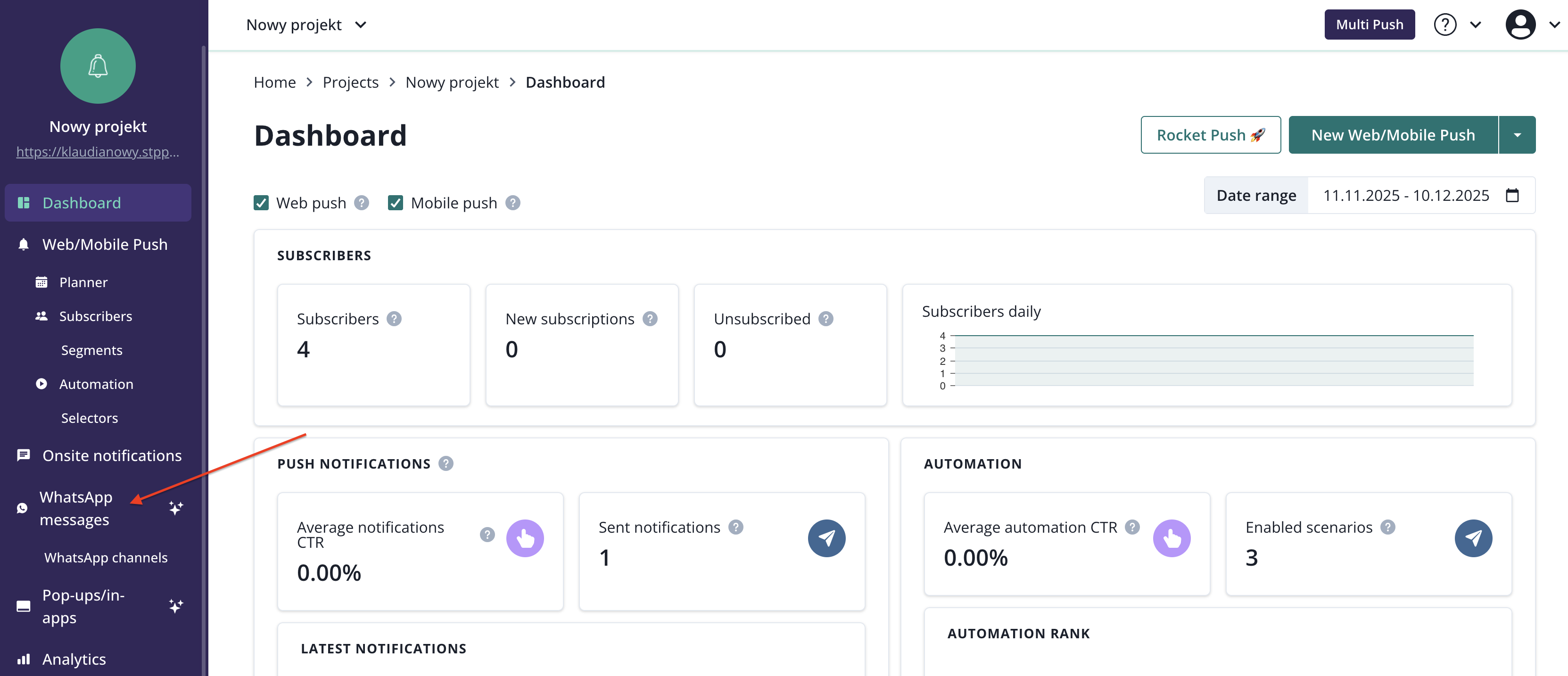 If you are unable to create a Whatsapp channel, it means that it is not available in your plan and you must upgrade it. Please contact our support@pushpushgo.com to do so.